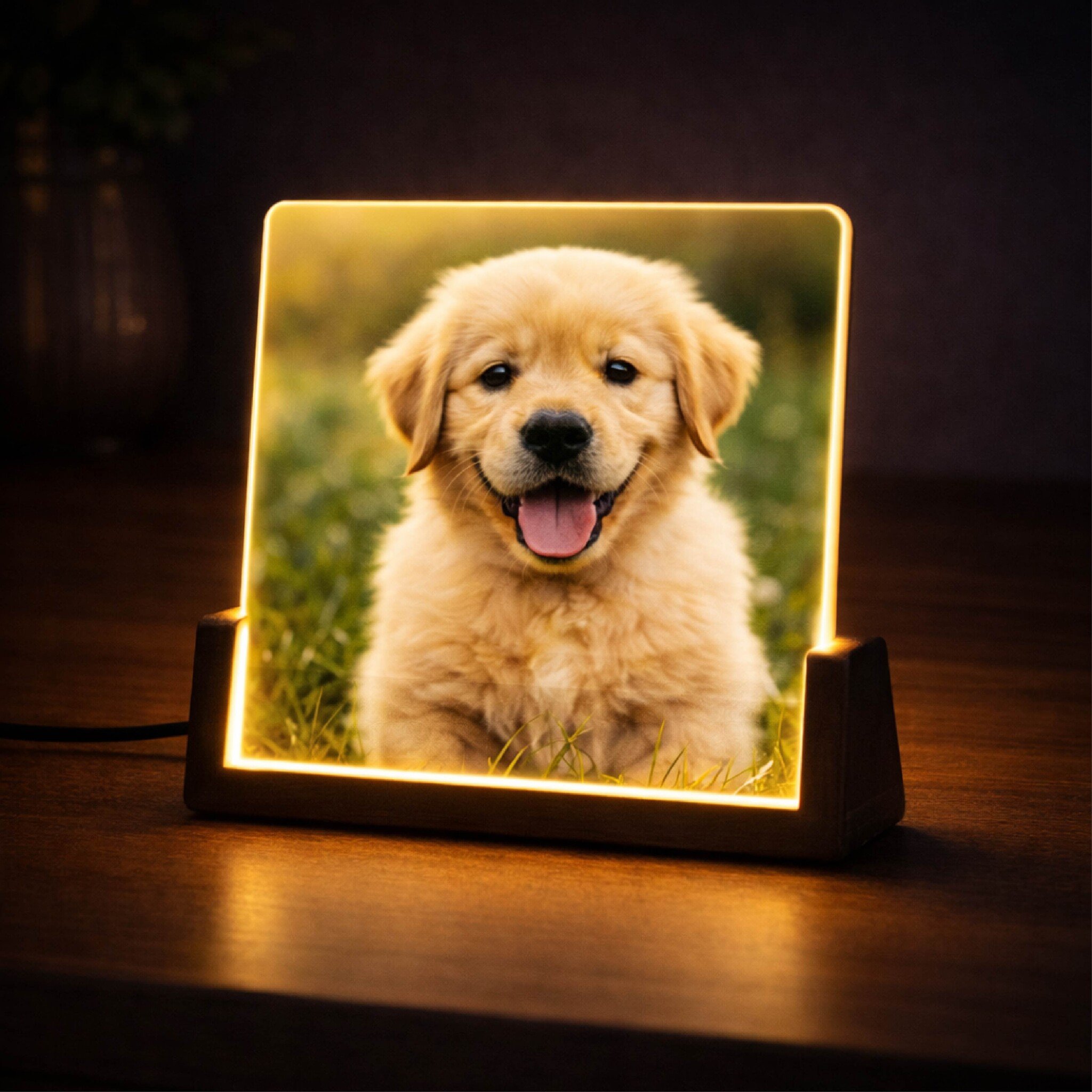 Upload eenvoudig je eigen afbeelding en creëer een unieke fotolamp met foto die perfect past in elk interieur. Deze LED lamp met foto is geschikt als decoratieve verlichting in de woonkamer, slaapkamer, bureau of kinderkamer en kan ook gebruikt worden als subtiel nachtlampje.