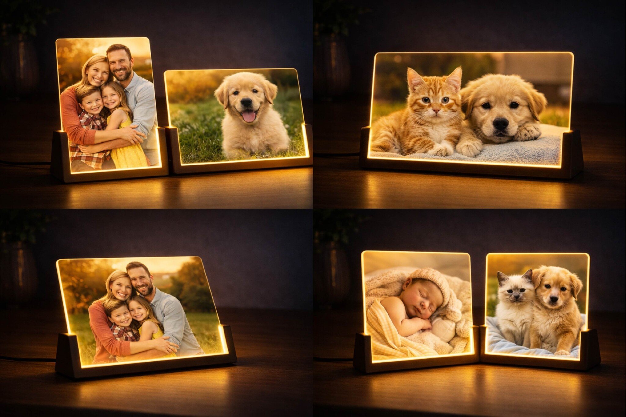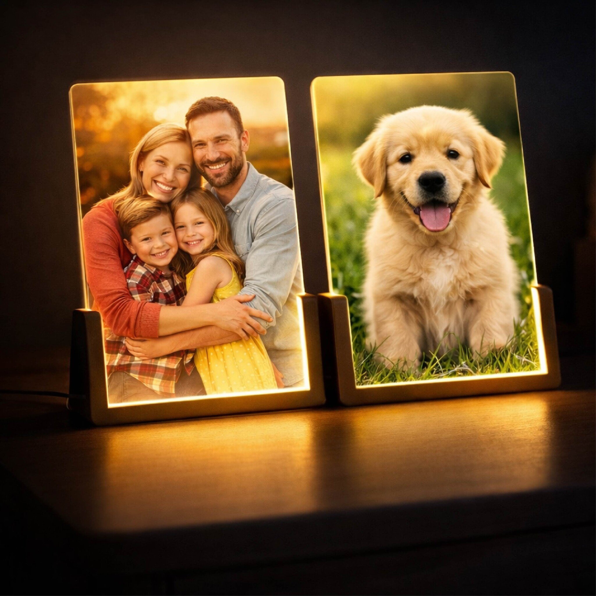 Breng je mooiste herinneringen tot leven met deze gepersonaliseerde LED fotolamp in houten frame. Upload je eigen foto en creëer een warm, sfeervol lichtpuntje in huis. Perfect als uniek cadeau voor geboorte, familie of huisdieren. Lees meer
