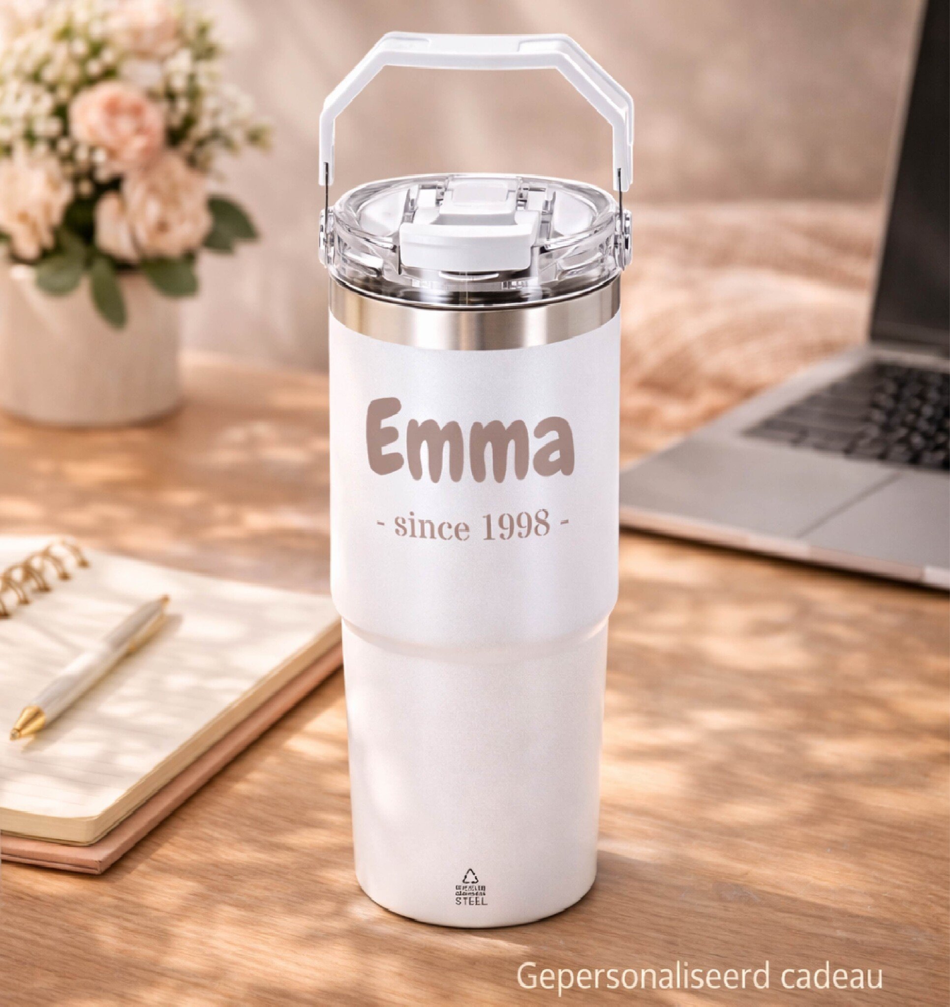 Maak jouw thermosbeker uniek met naam – het perfecte persoonlijke cadeau voor elke dag.