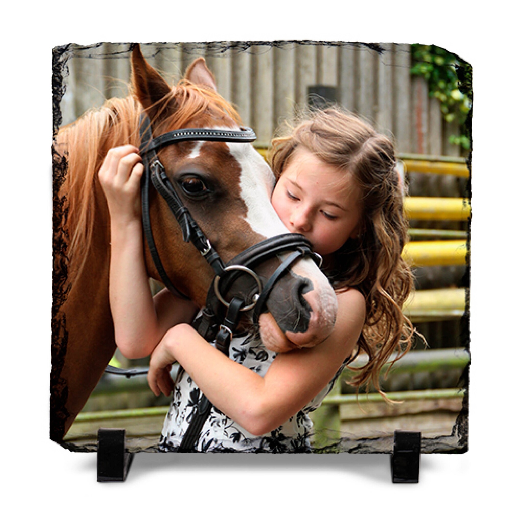 Leisteen vierkant met foto's tekst en illustraties 15 x 15 cm